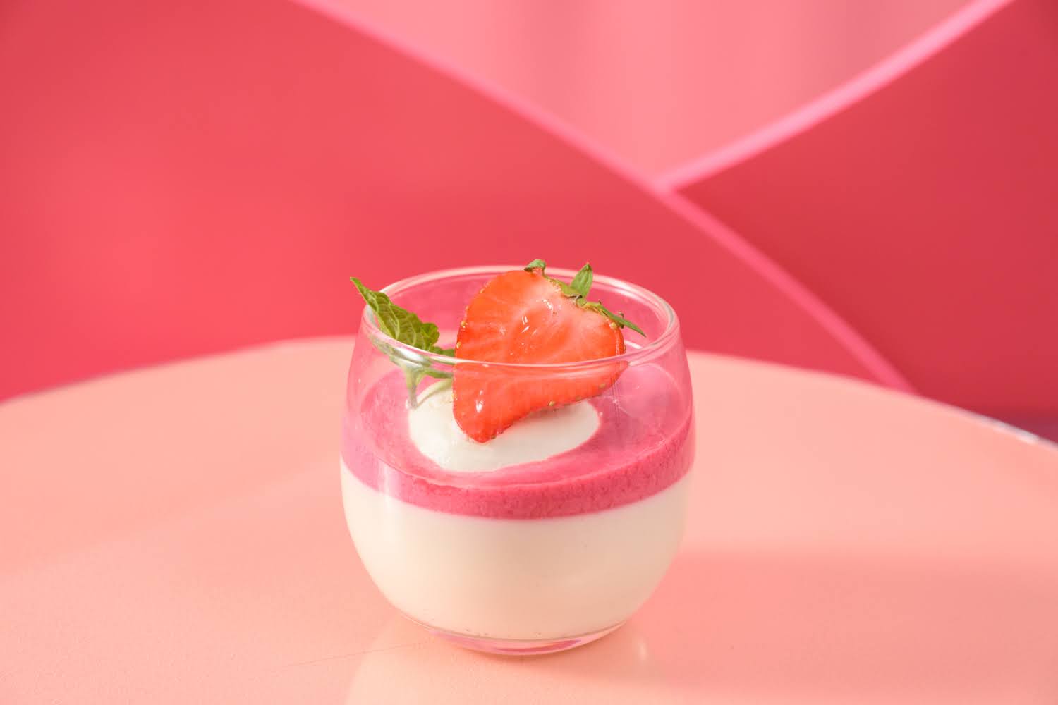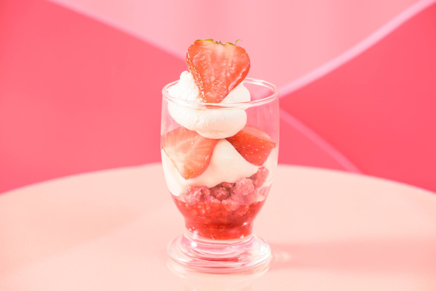 いちごの⾚と対象的な⽩をイメージし、フランスのデザート様式「アシェット・デセール」の華やかな世界を表現した新メニューに刷新します。