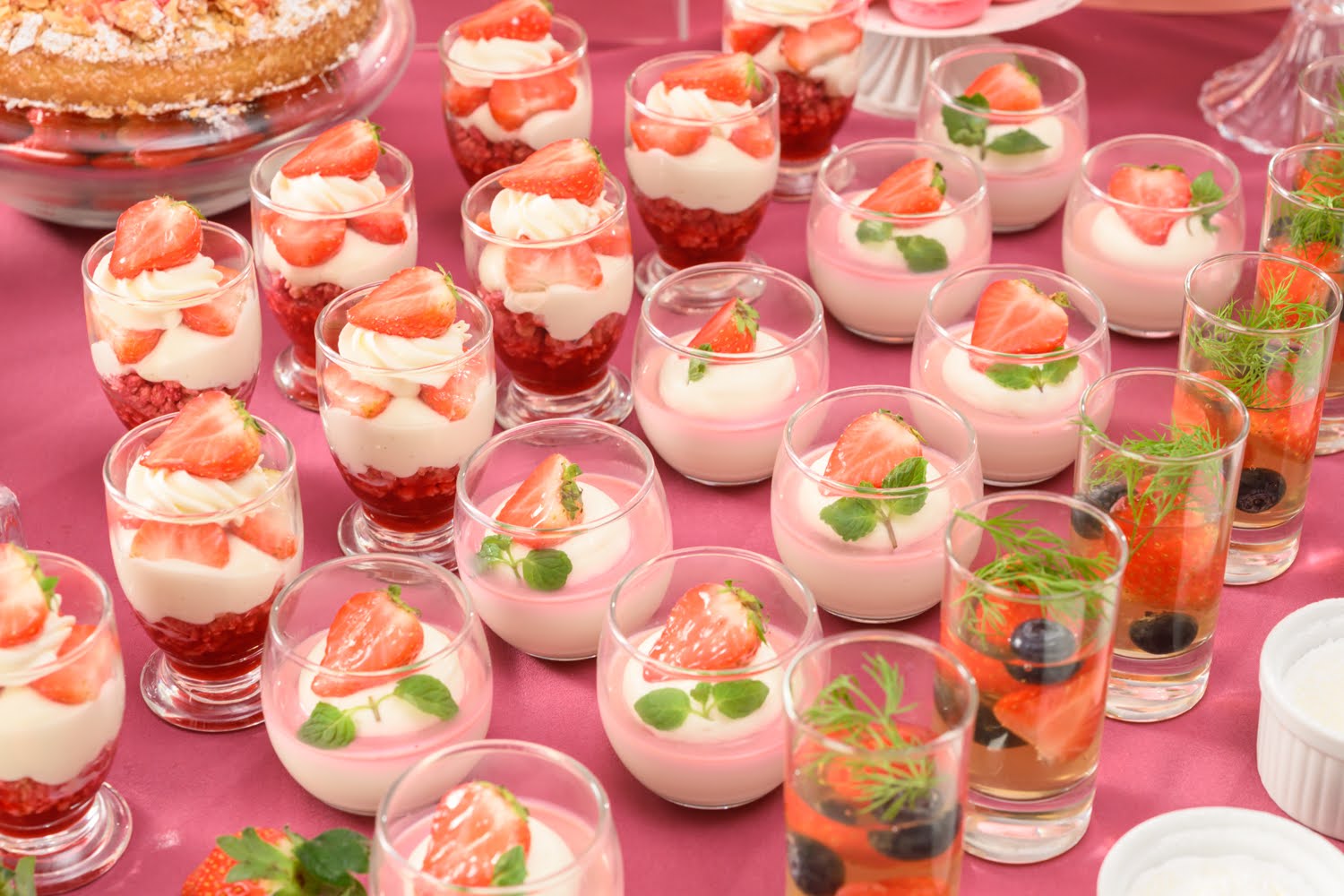 愛らしい⾚と⽩のいちごのスイーツで、お客様だけの「アシェット・デセール」をお楽しみ下さい。