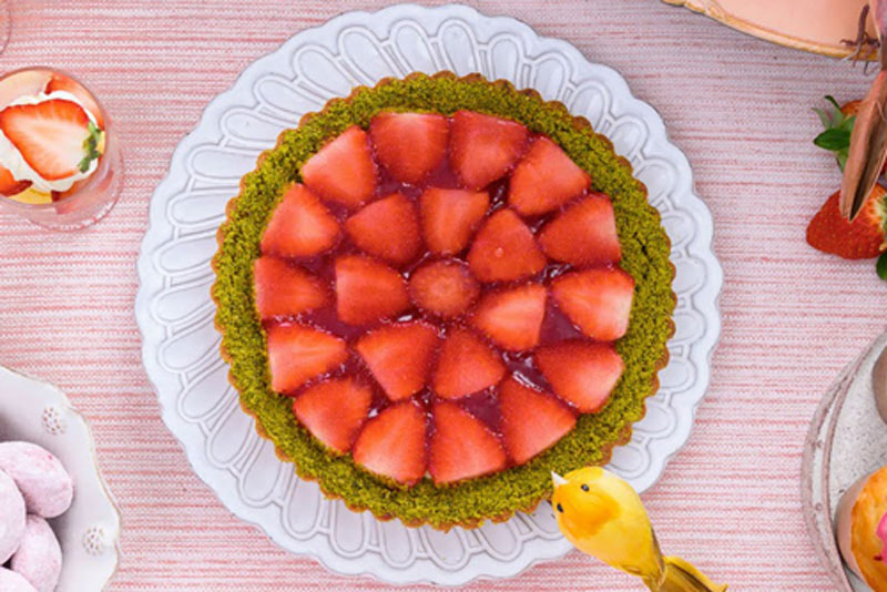 鮮やかないちごの⾚と、優しくやわらから桜のピンクのカラーミックスで、⾷べる前から⼼が弾む光景が広がります。
